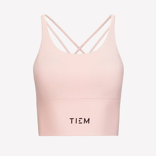 Available in pink with a metallic rose gold TIEM logo, this soft and strappy top makes a bold but classic statement.